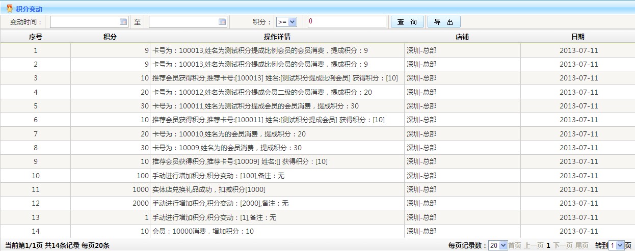 :查詢會員積分變動情況并可以導出Excel文檔