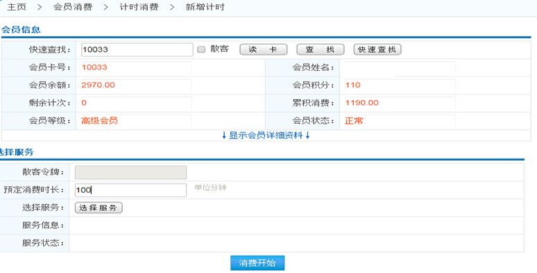 如果會員有充時但是消費時長已經(jīng)超過充時時長,將會跳轉(zhuǎn)到結(jié)算界面(快速消費界面)做結(jié)算;